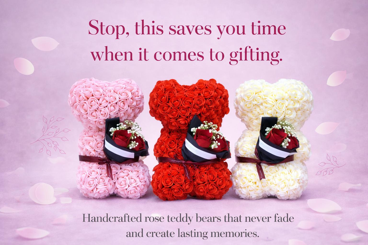 Foam rose teddy bear carry bouquet. Ideal for weddings, Mother's Day, thank you to nurses/teachers or other celebrations!